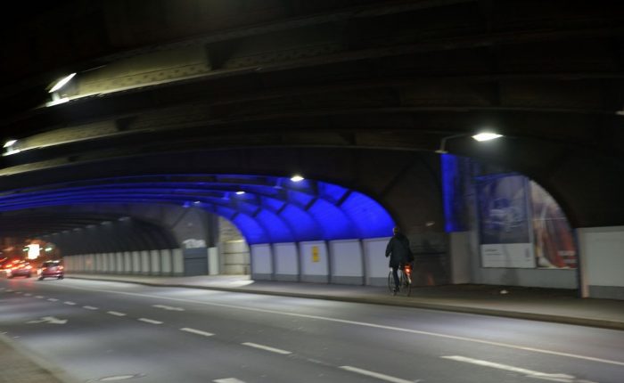 Das Lichtkunstwerk „Gateway“ von Kirsten und Peter Kaiser befindet sich in einem erbarmungswürdigen, in einem...